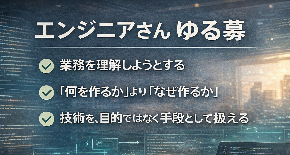 - 募集: 特定の案件に限らず、この価値観に共感するパートナー・エンジニアを中長期的に募集中。